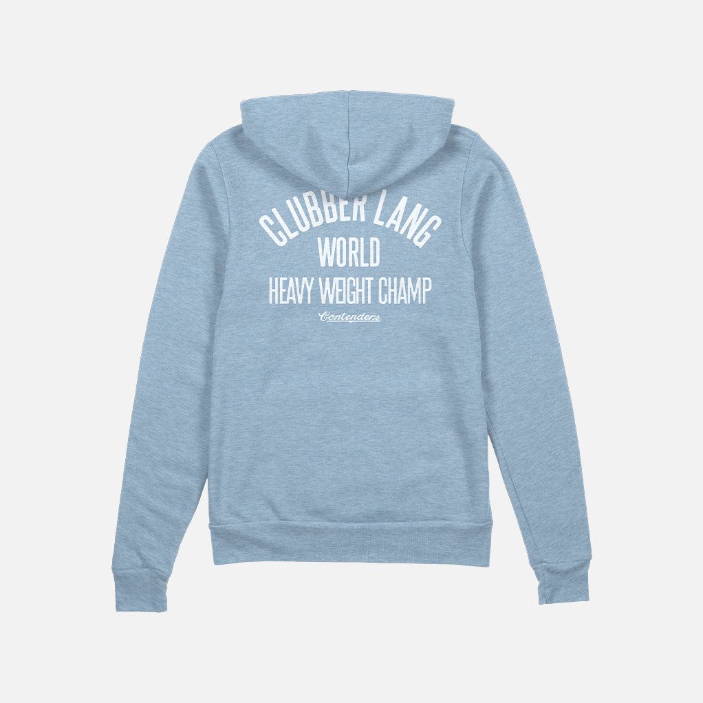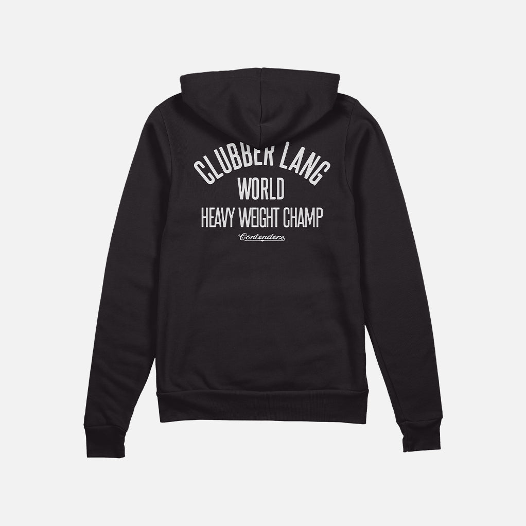 Designed by Contenders and crafted with lightweight loopback terry, this piece delivers all-day comfort with a fighter’s edge. Pre-laundered for softness and built with premium finishes, the Clubber Lang Zip Up Hoodie is the perfect addition to any fan’s rotation—whether you're training, cooling down, or stepping into your own spotlight.
