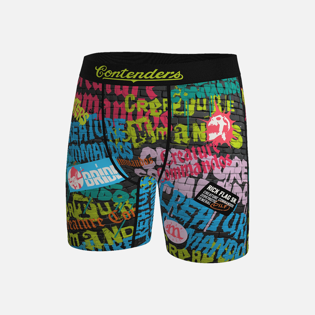 The Creature Commandos Punk Show Brief throws you into the chaos of DC Studios’ Creature Commandos — a violent, darkly comedic squad of monsters, misfits, and operatives who don’t follow orders… they break them. Covered in graffiti-style graphics and ripped poster energy, this design feels like it was pulled straight from a late-night punk show.