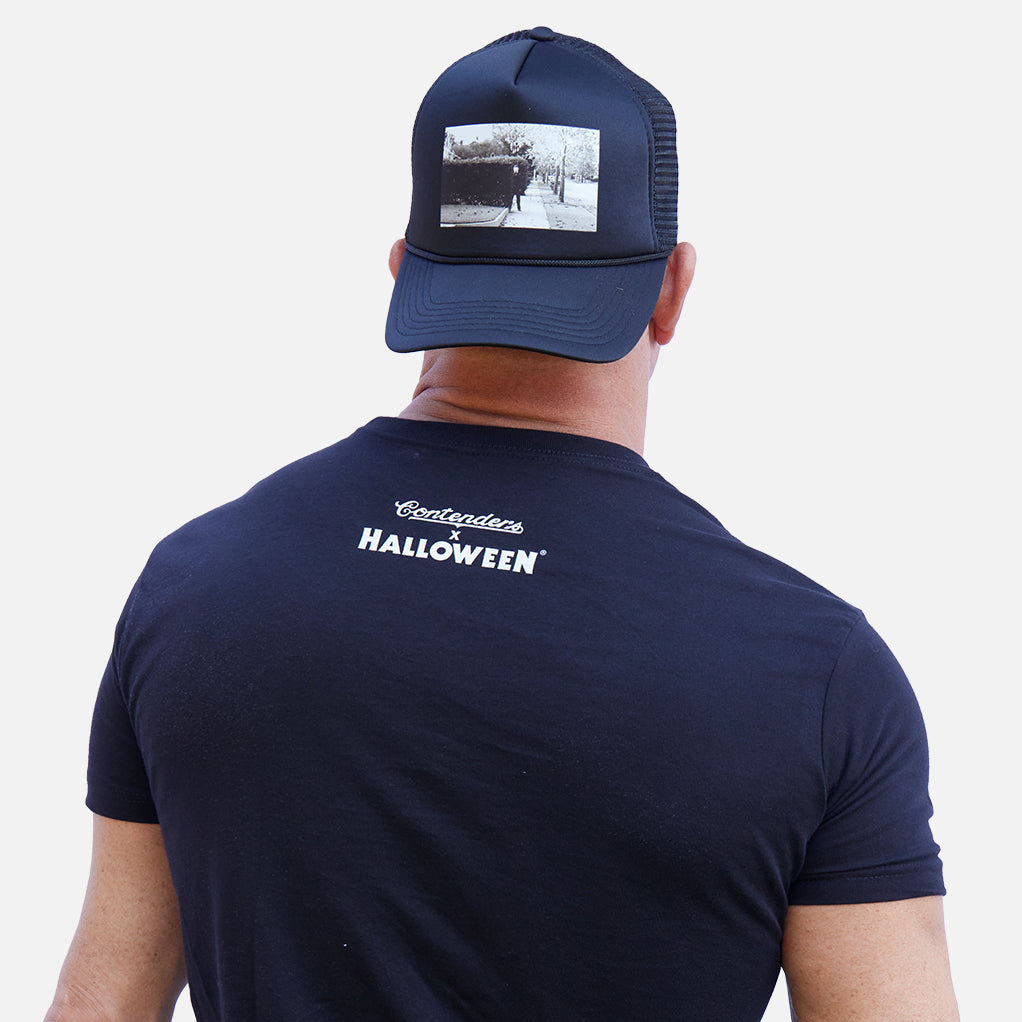 Michael Myers moves in the shadows and stalks his victims. Michael appears by this hedge to watch Laurie Strode and her friend walk home from school on a street in Haddonfield, IL. Be careful who is watching you in this ring-spun cotton, unisex everyday tee with a comfortable feel and a tailored fit. The tees have a set in collar and are incredibly durable.