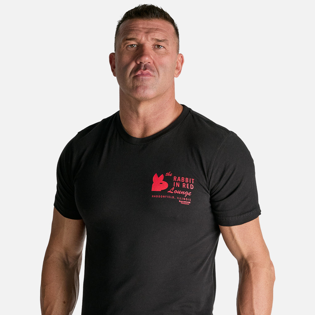 This officially licensed Halloween tee pays homage to one of the film’s most chilling details — the infamous Rabbit in Red Lounge. Located just east of Route 1 in Haddonfield, Illinois, the exotic club became a key clue for Dr. Loomis as he tracked Michael Myers in the original classic. Featuring the bold Rabbit in Red logo on both the chest and back, this design brings cinematic history to life in a clean, striking style. Wear this one-of-a-kind graphic to channel the suspense and legacy of Halloween.